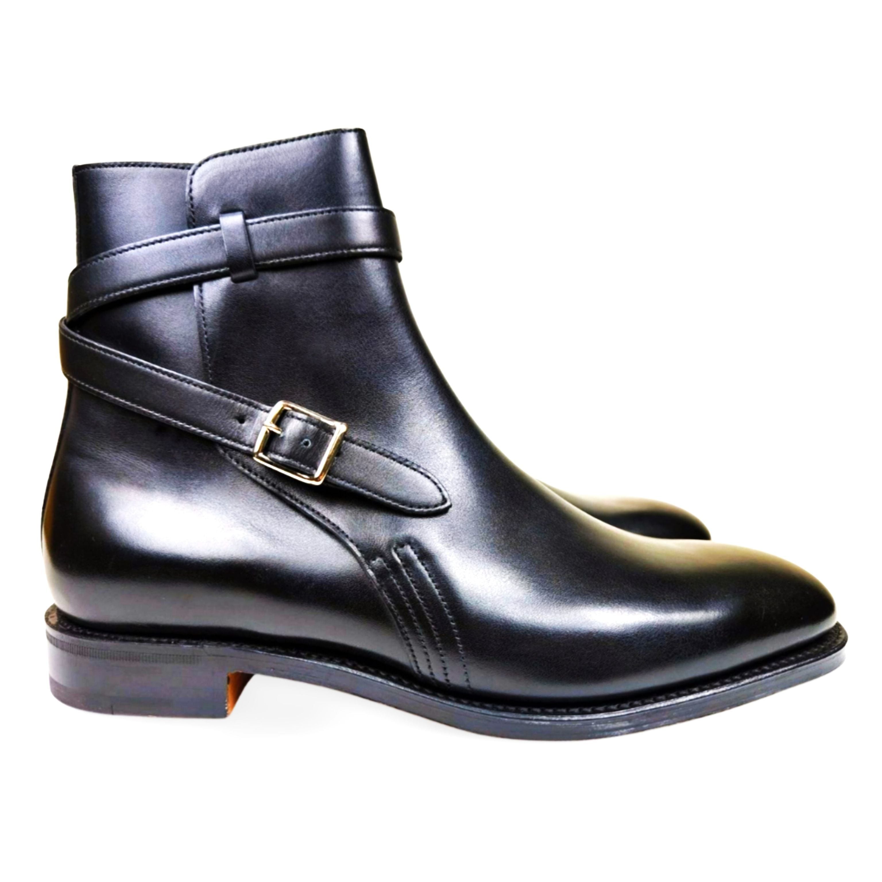 ジョンロブのアボットは、単なるジョッパーブーツではありません。足首から流れるように配された独創的なラップアラウンドストラップと、計算された低い位置で輝くバックル。この唯一無二のデザインは、パンツの裾から覗くバックルを洗練されたアクセントへと昇華させ、他のブーツとは一線を画すエレガンスを演出します。