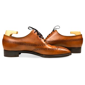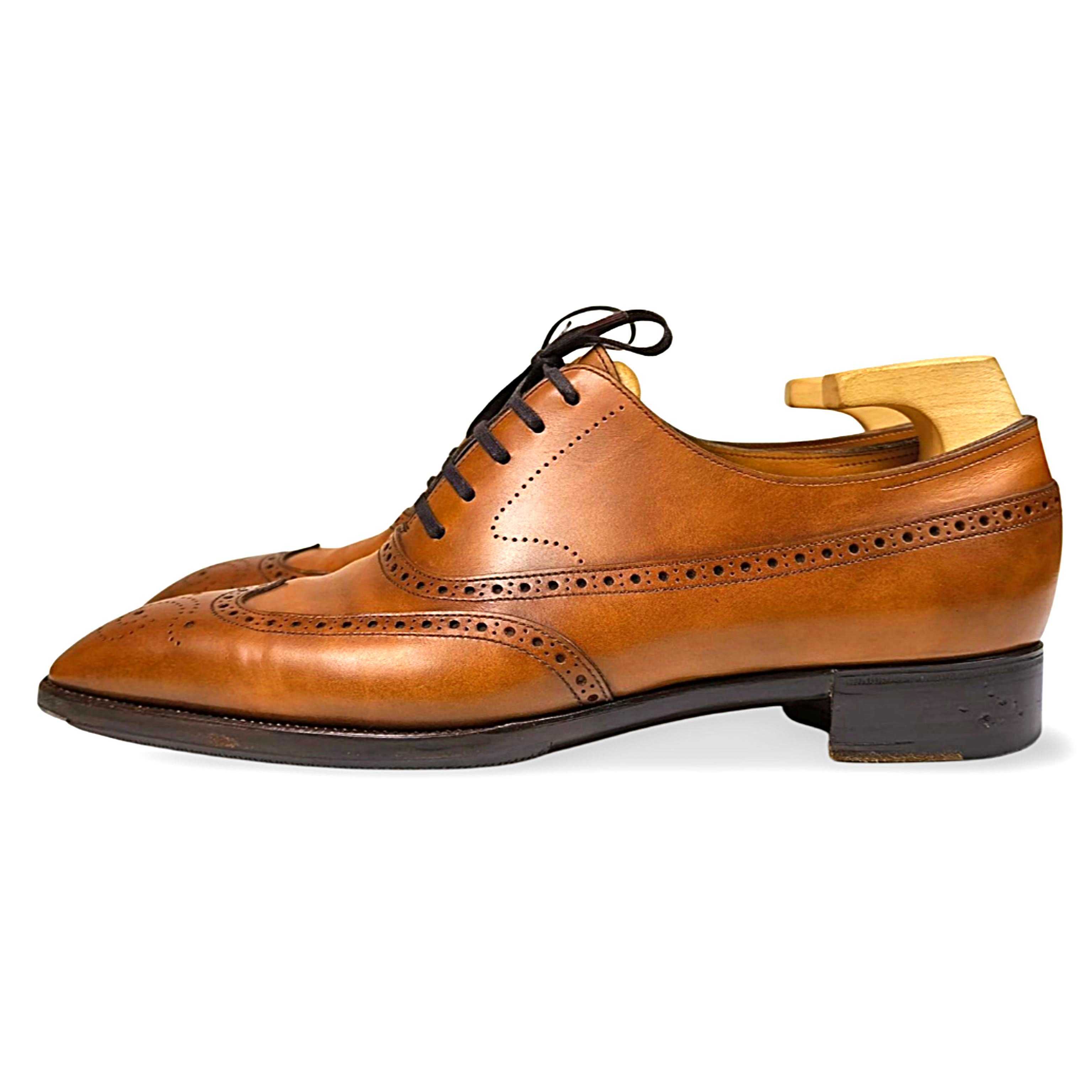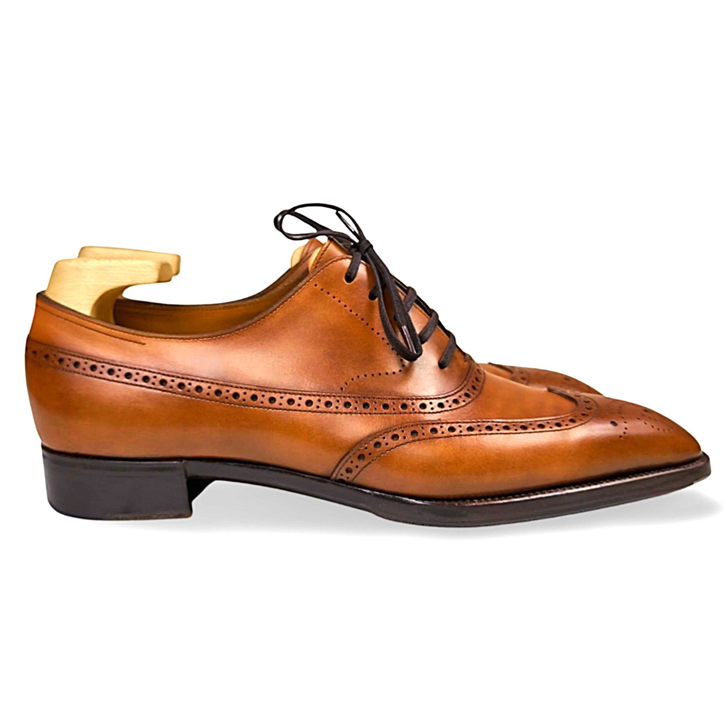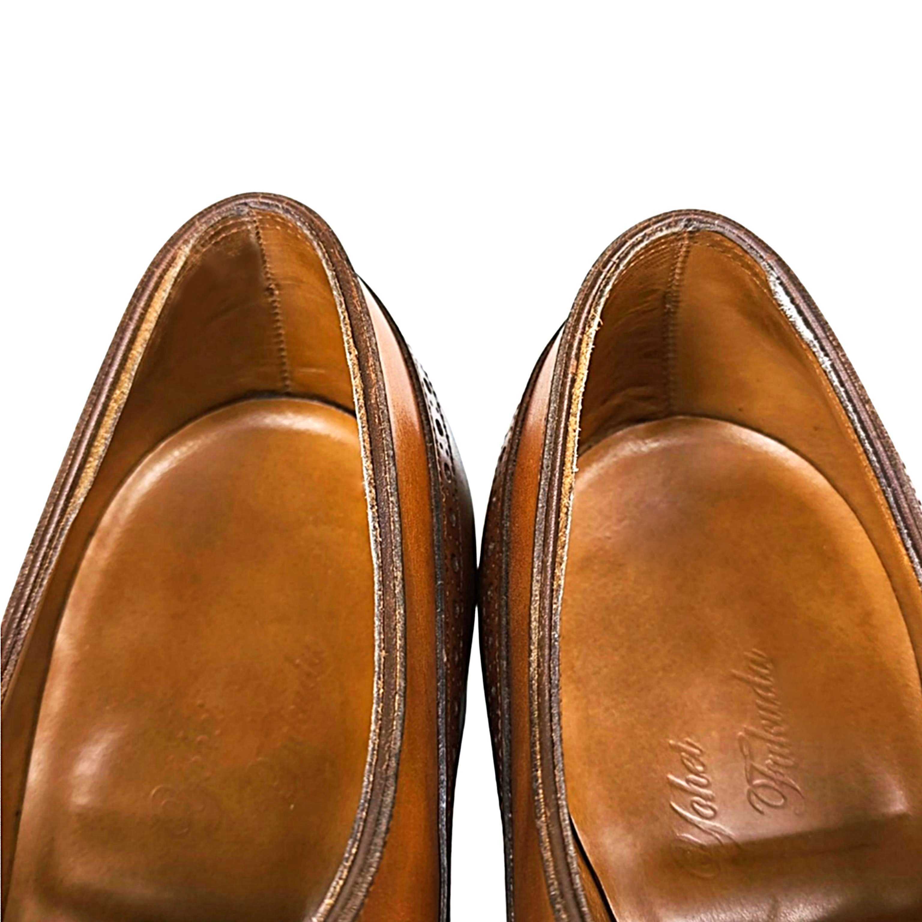 カジュアルなフルブローグの概念を覆す、圧倒的なエレガンス。アッパーに施された約800個の穴は、機械ではなく、熟練の職人が1穴1穴、魂を込めて手で打ち込んだ情熱の結晶です。繊細なスワンネック、ハンドウェルト、スリムなベベルウエスト。流麗なラスト17番に最高級フルグレインカーフとオークバークソール。そのすべてがビスポーククオリティの証です。靴を知り尽くし、本物を求めるマニアの審美眼にこそふさわしい逸品です。