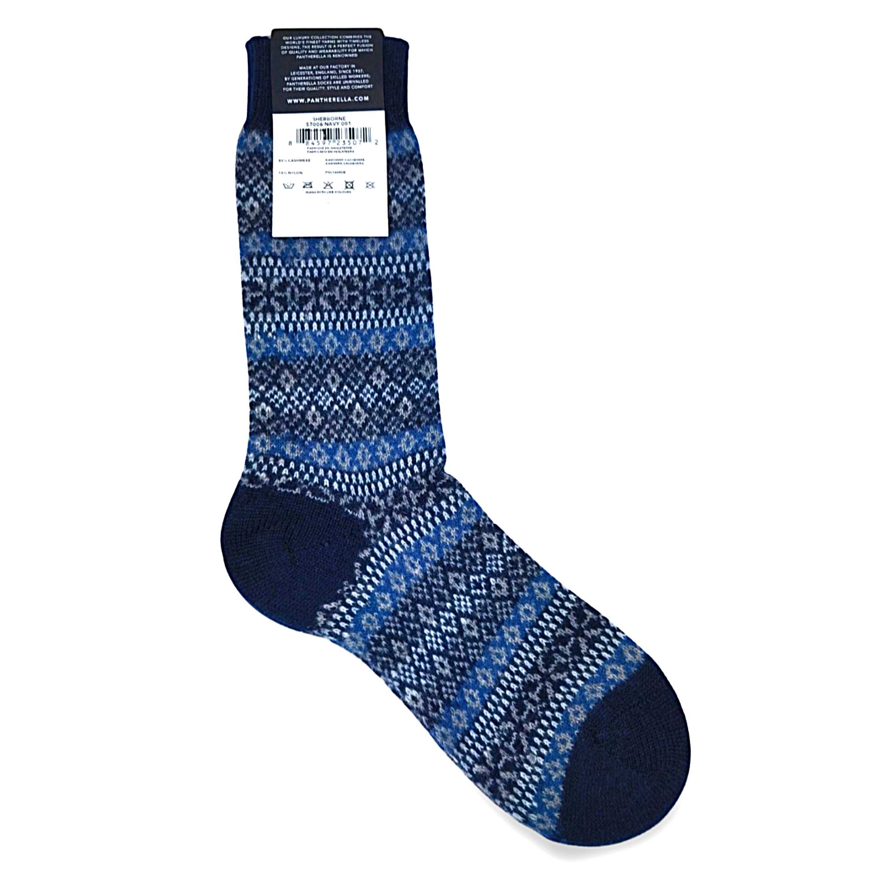 ★海外限定レア・定価1.5万円・新品未使用★ パンセレラ 最高級カシミヤリブソックス ホーズ ネイビー柄 Sサイズ(24.5~26.5cm)