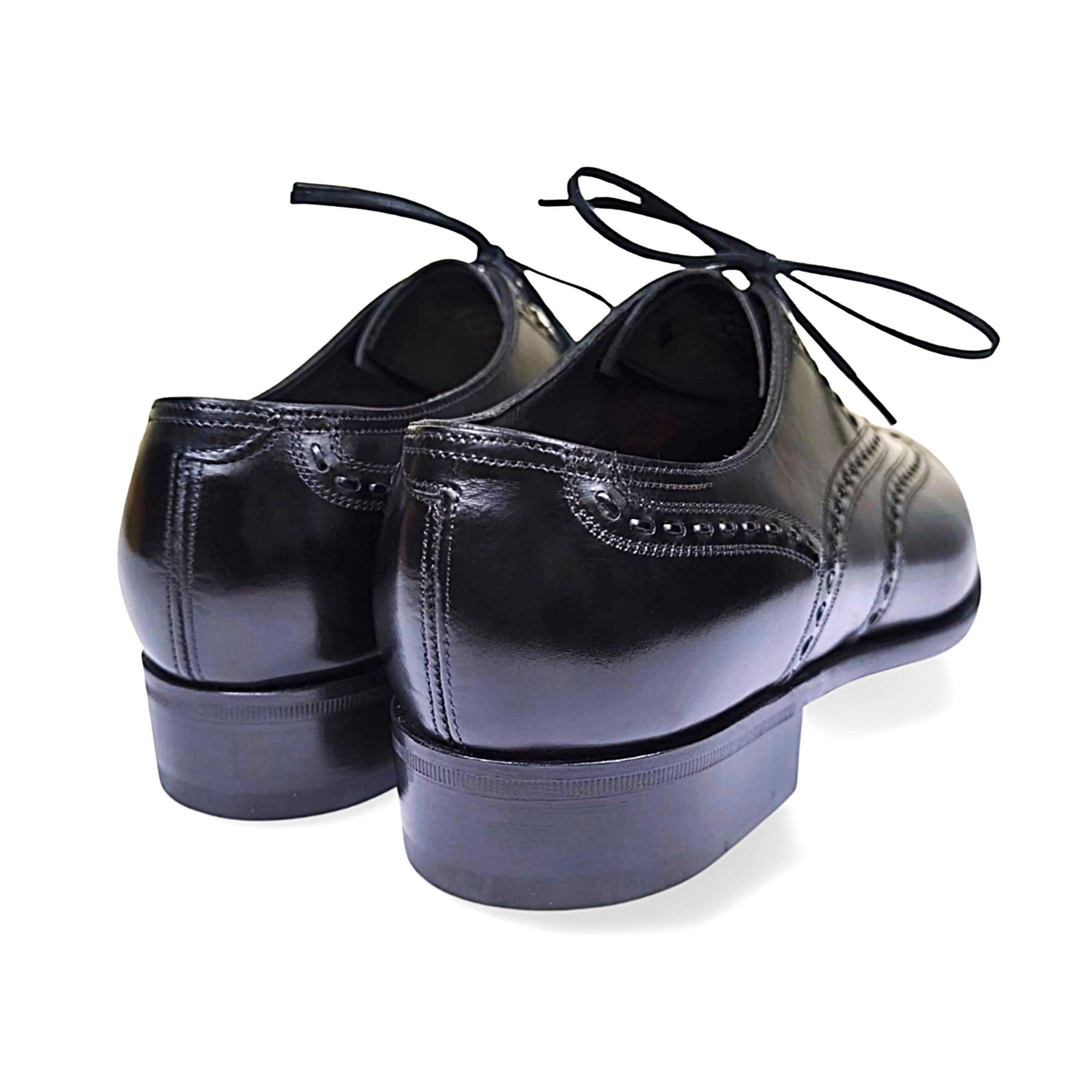 贅沢な一枚革のアッパーに、熟練職人が手作業で施した緻密なレザーインターレース。それはもはや刺繍の域に達する芸術的なディテールです。この緻密な編み込みと繊細なダブルステッチが、流麗なラスト7000の上に、優雅なウィングチップの表情を描き出します。名作ラスト7000が描く流麗なシルエットと吸い付くようなフィット感は、成功者の足元を完璧に彩ります。