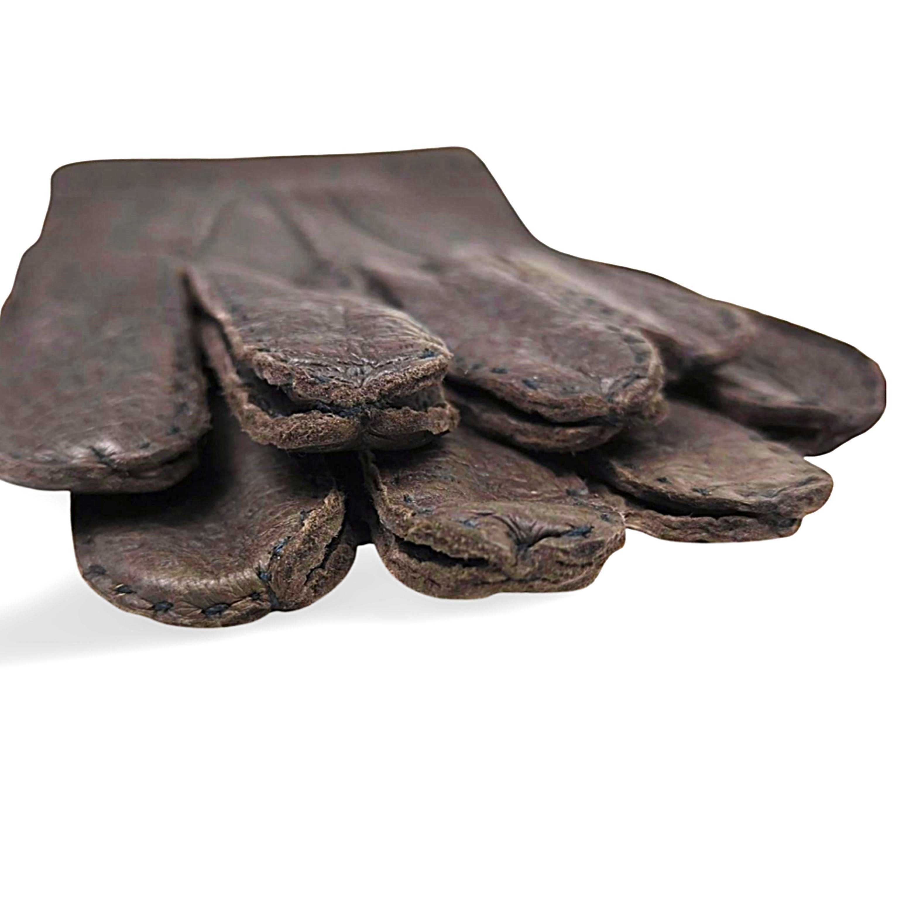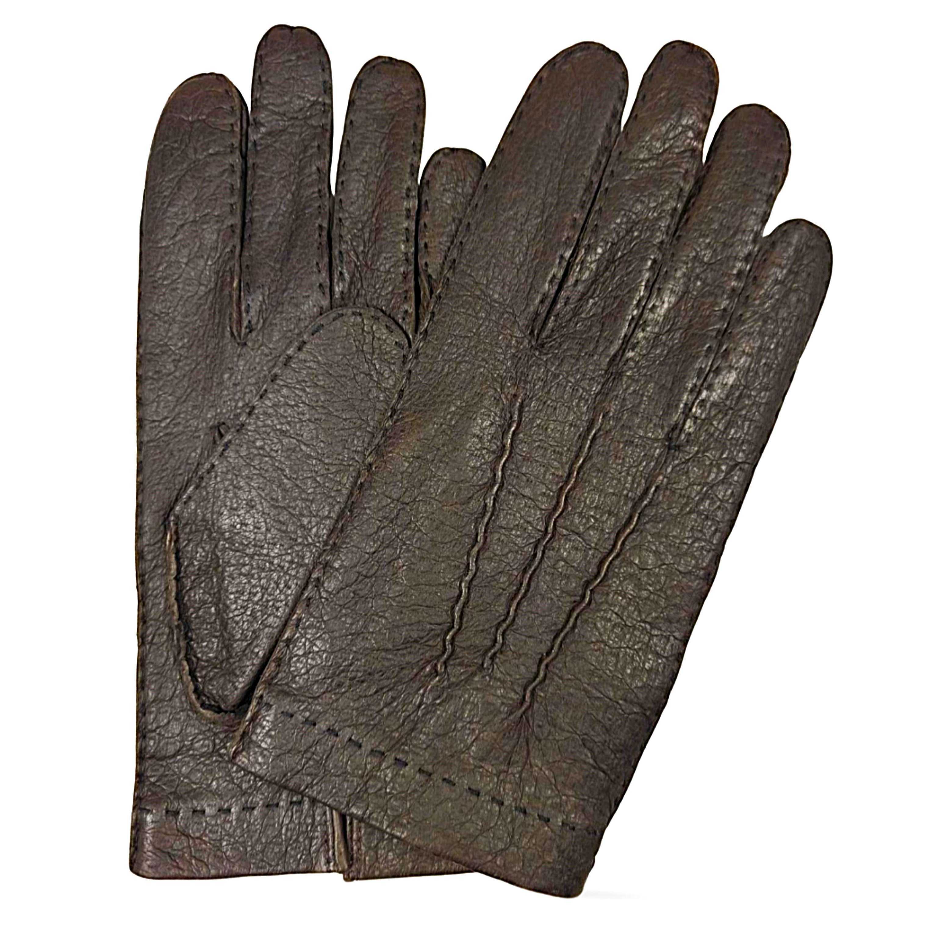 デンツは英国王室御用達のロイヤルワラントを授かり、かのジェームズ・ボンドの腕をも飾ったイギリス最高峰のグローブメーカーです。希少なペッカリーレザーを贅沢に使ったトップモデルの一つで、裏地なしで仕立てたアンライニング仕様は、まるで第二の皮膚のように吸い付き、未体験のフィット感をもたらします。マスターカッターのハンドソーンが温もりを添え、使い込むほどに持ち主の手と一体化し、その感触は「手袋をしたまま新聞をめくることができる」といわれるほどです。紳士の手元に知性と色気を宿す、生涯の相棒となるべき逸品です。
