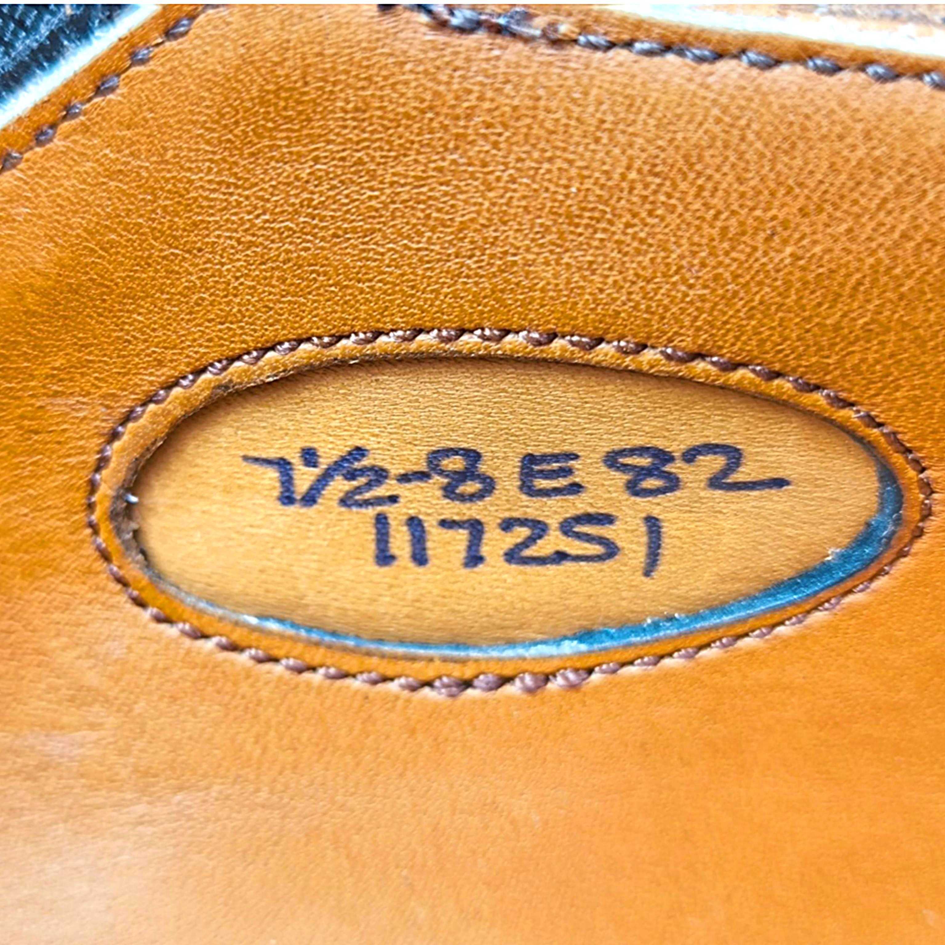 傑作82ラストを採用した、極めてエレガントなサイドエラスティックシューズ。一見すると端正な内羽根プレーントゥですが、実は精巧なイミテーションレースとサイドのゴムにより、靴紐を結ぶ手間なくスマートな脱ぎ履きを可能にします。スリムなアーモンドトゥが描く洗練されたシルエットは、ビジネスから式典まで、あらゆるフォーマルシーンで隙のない品格を演出。忙しいエグゼクティブに、美しさと快適な所作を同時に提供する、実用性と美学を極めた逸品です。