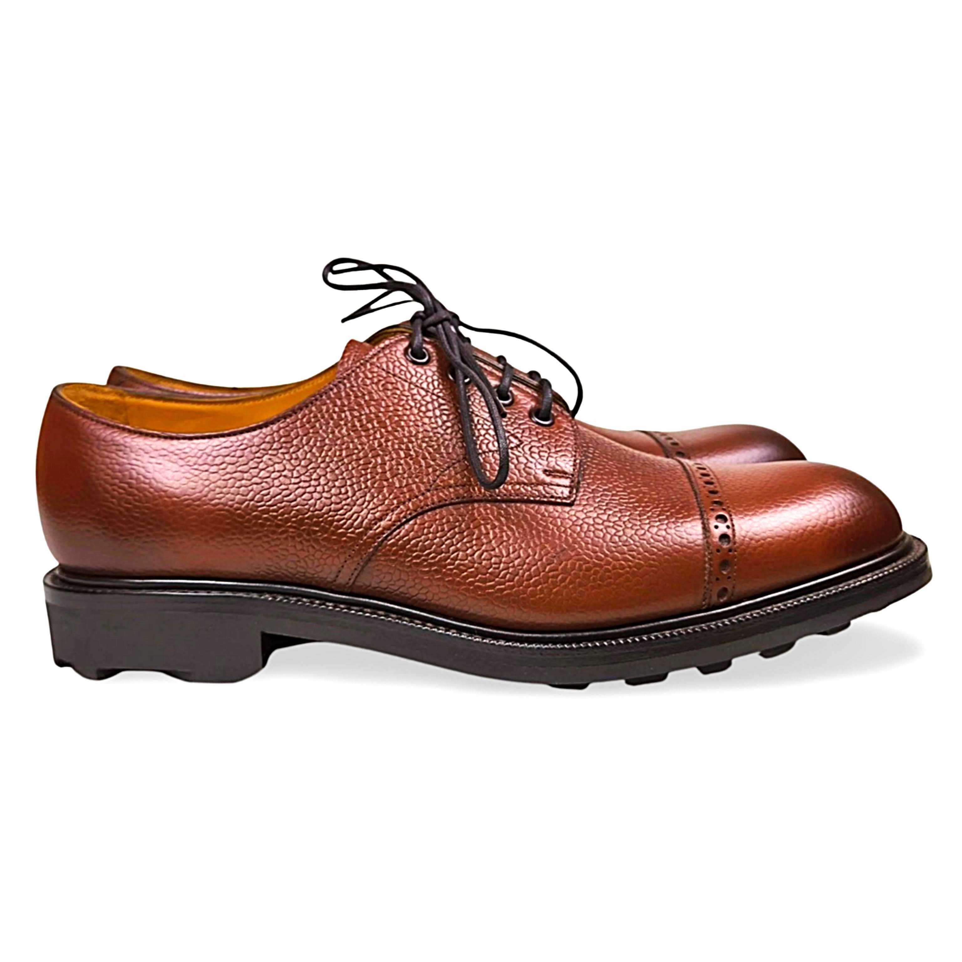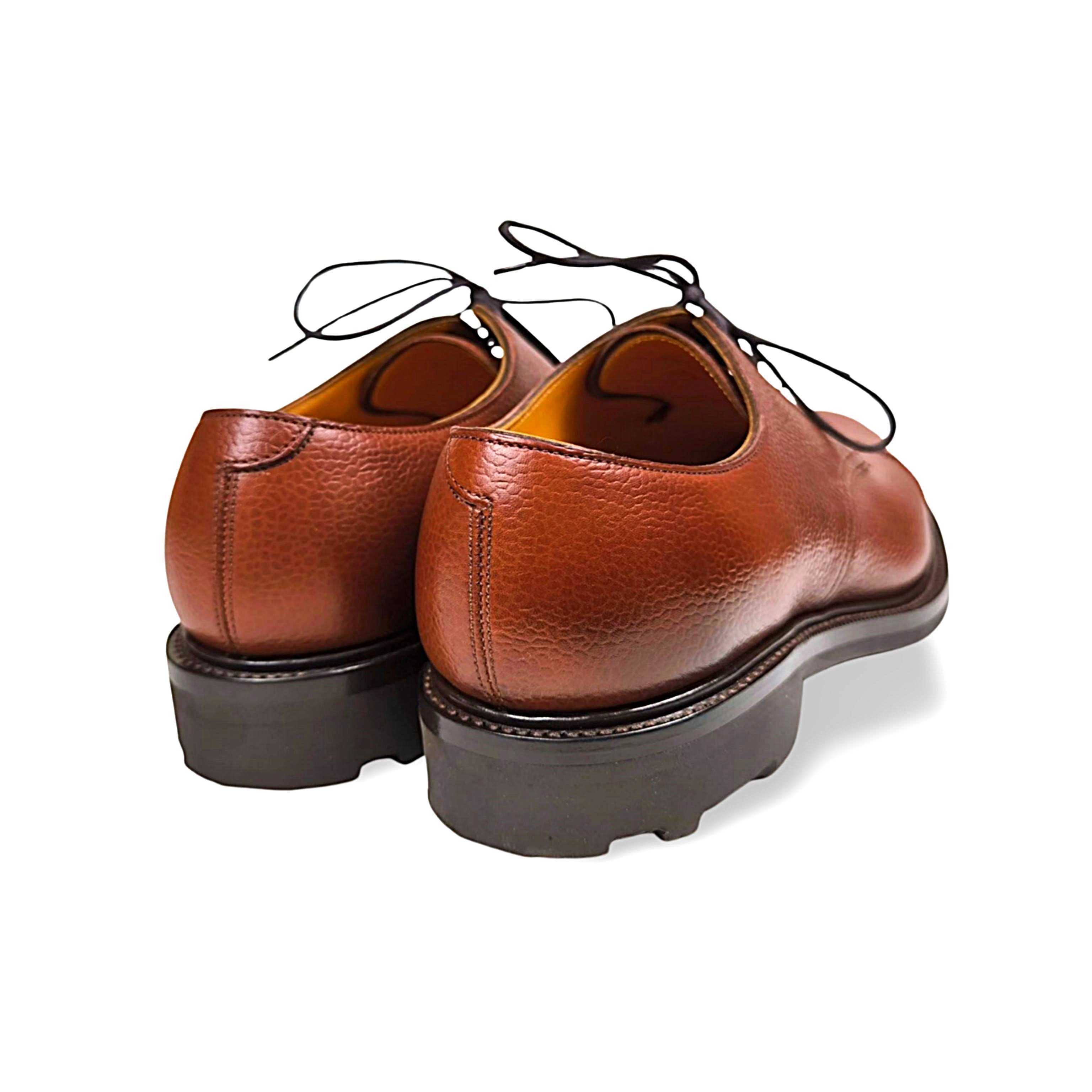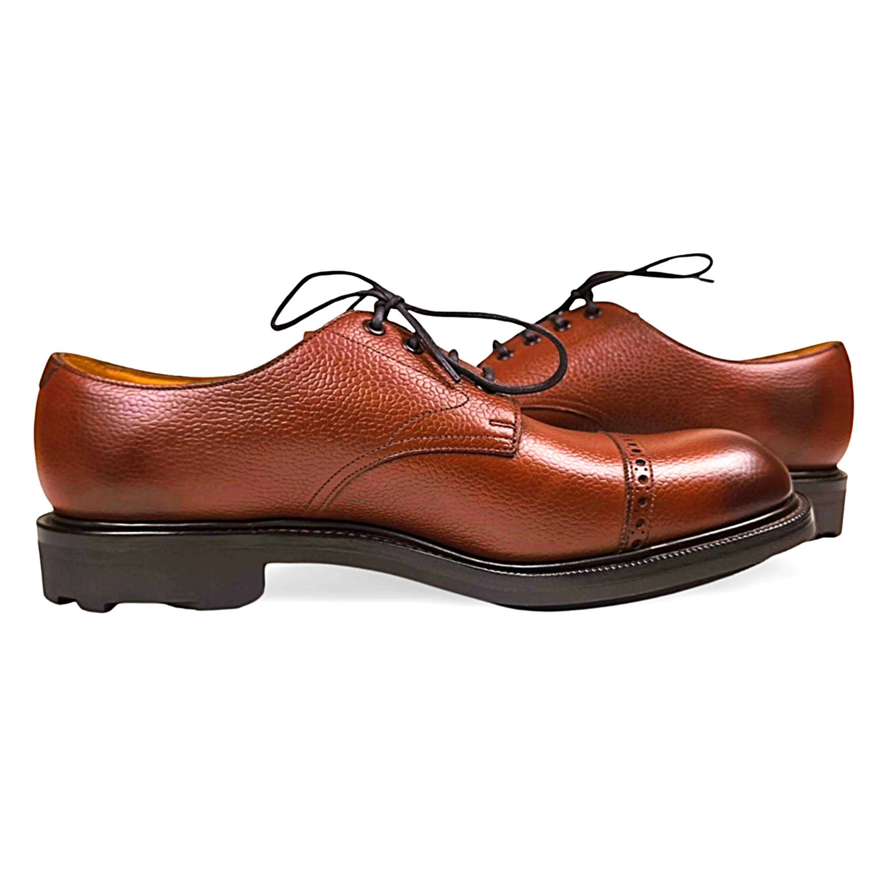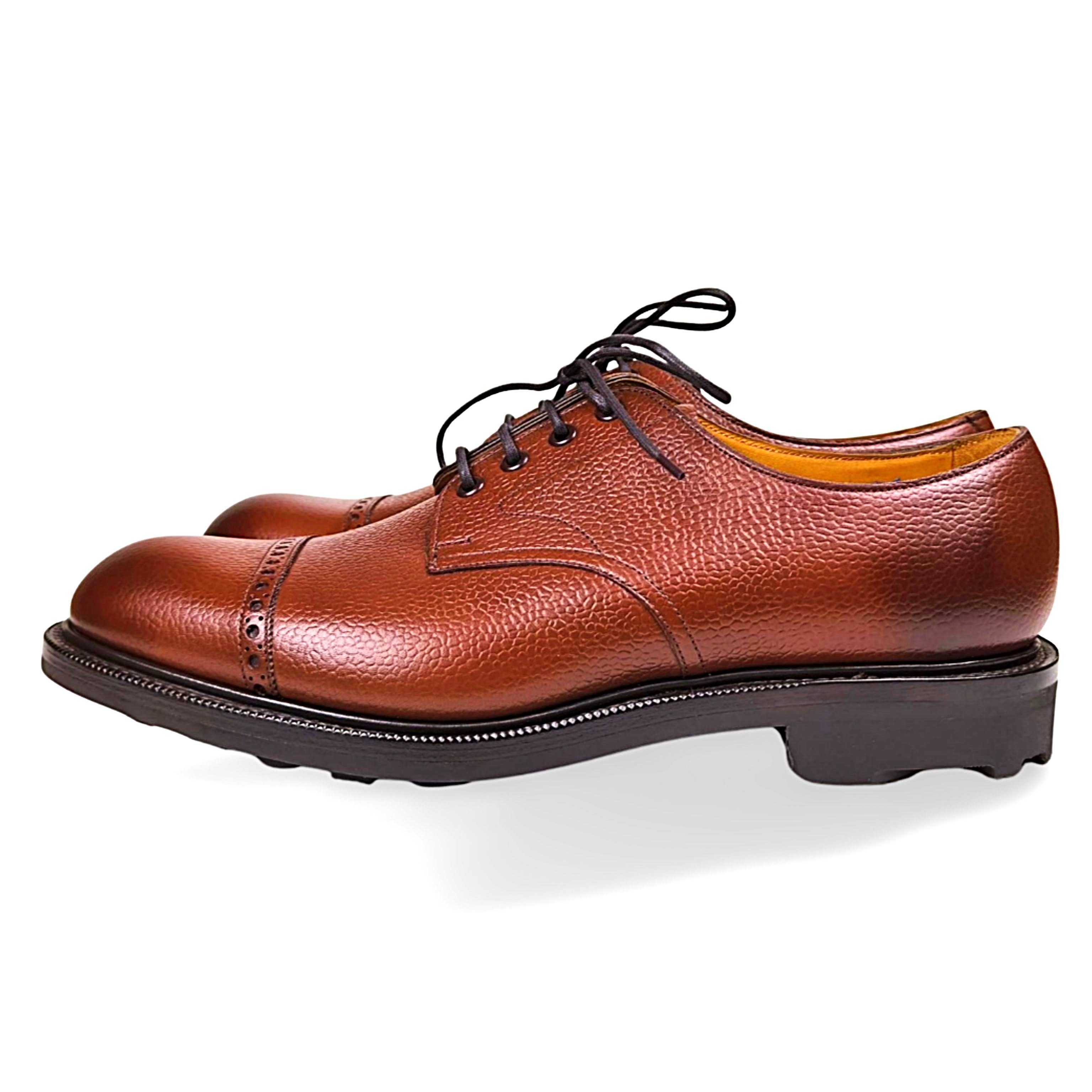 雨の日こそ真価を発揮する、実用性と英国カントリーの美学を極めた傑作。特筆すべきは、現代の既製靴では極めて稀な「ヴェルトショーン製法」を採用している点です。アッパー革をウェルトの上に被せて縫い合わせるこの伝統技法と、屈強なリッジウェイソールの組み合わせが、圧倒的な耐水性とグリップ力を実現します。力強いシボ革の表情とボリュームあるフォルムは、デニムやチノパンとも相性抜群。悪天候さえも楽しみに変える、生涯の頼もしい相棒となる逸品です。