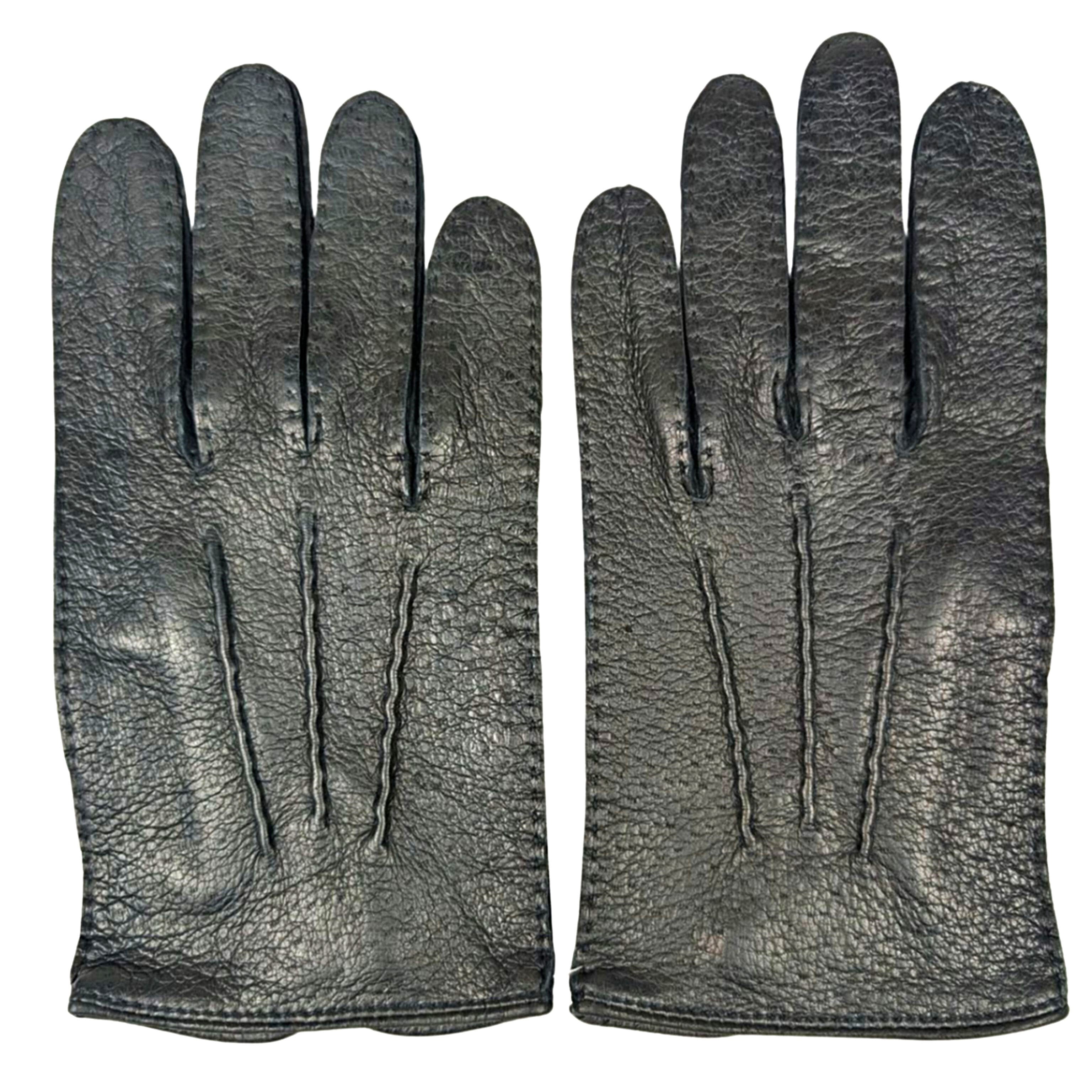 デンツは英国王室御用達のロイヤルワラントを授かり、かのジェームズ・ボンドの腕をも飾ったイギリス最高峰のグローブメーカーです。希少なペッカリーレザーを贅沢に使ったトップモデルの一つで、裏地なしで仕立てたアンライニング仕様は、まるで第二の皮膚のように吸い付き、未体験のフィット感をもたらします。マスターカッターのハンドソーンが温もりを添え、使い込むほどに持ち主の手と一体化し、その感触は「手袋をしたまま新聞をめくることができる」といわれるほどです。紳士の手元に知性と色気を宿す、生涯の相棒となるべき逸品です。