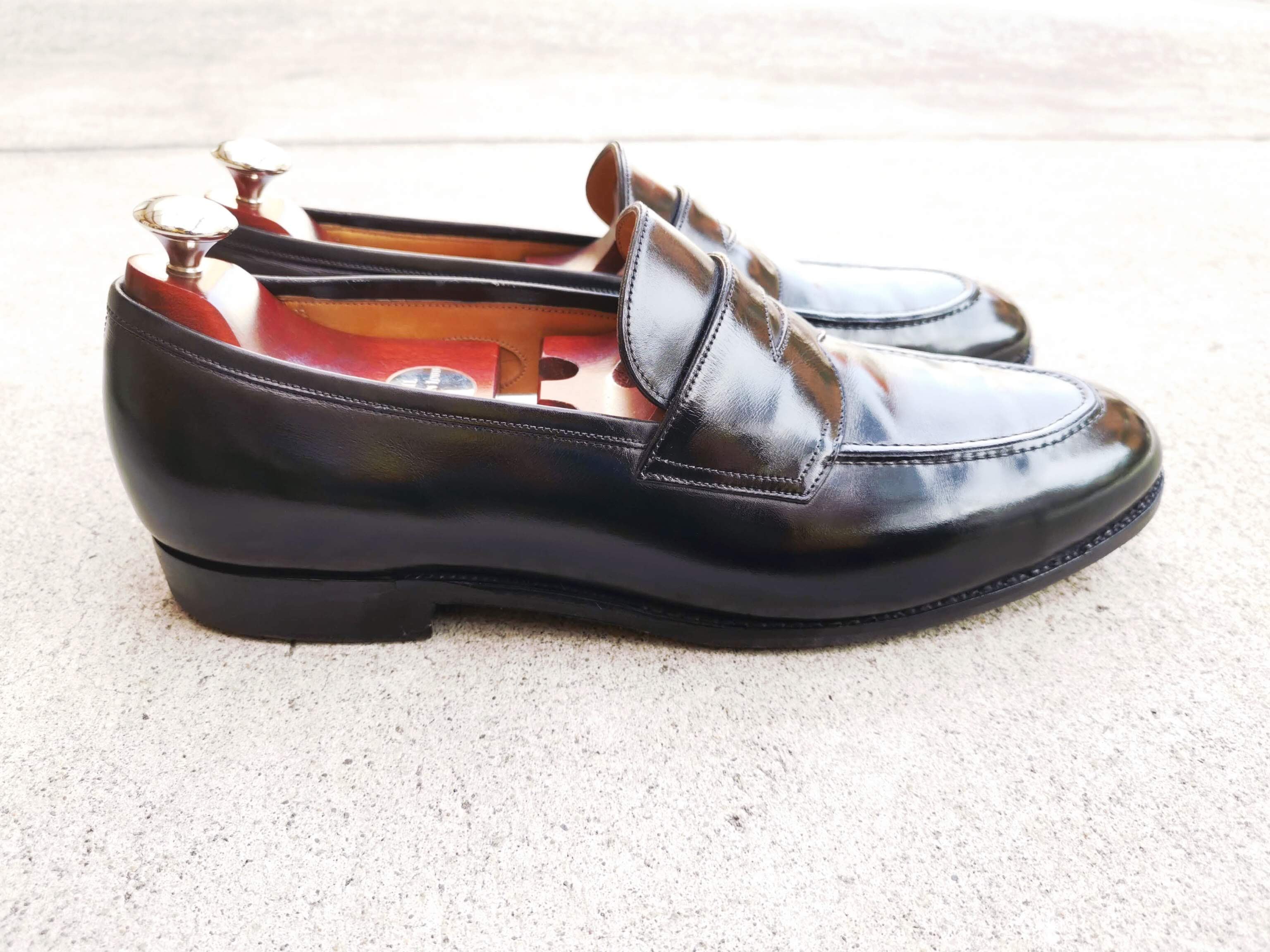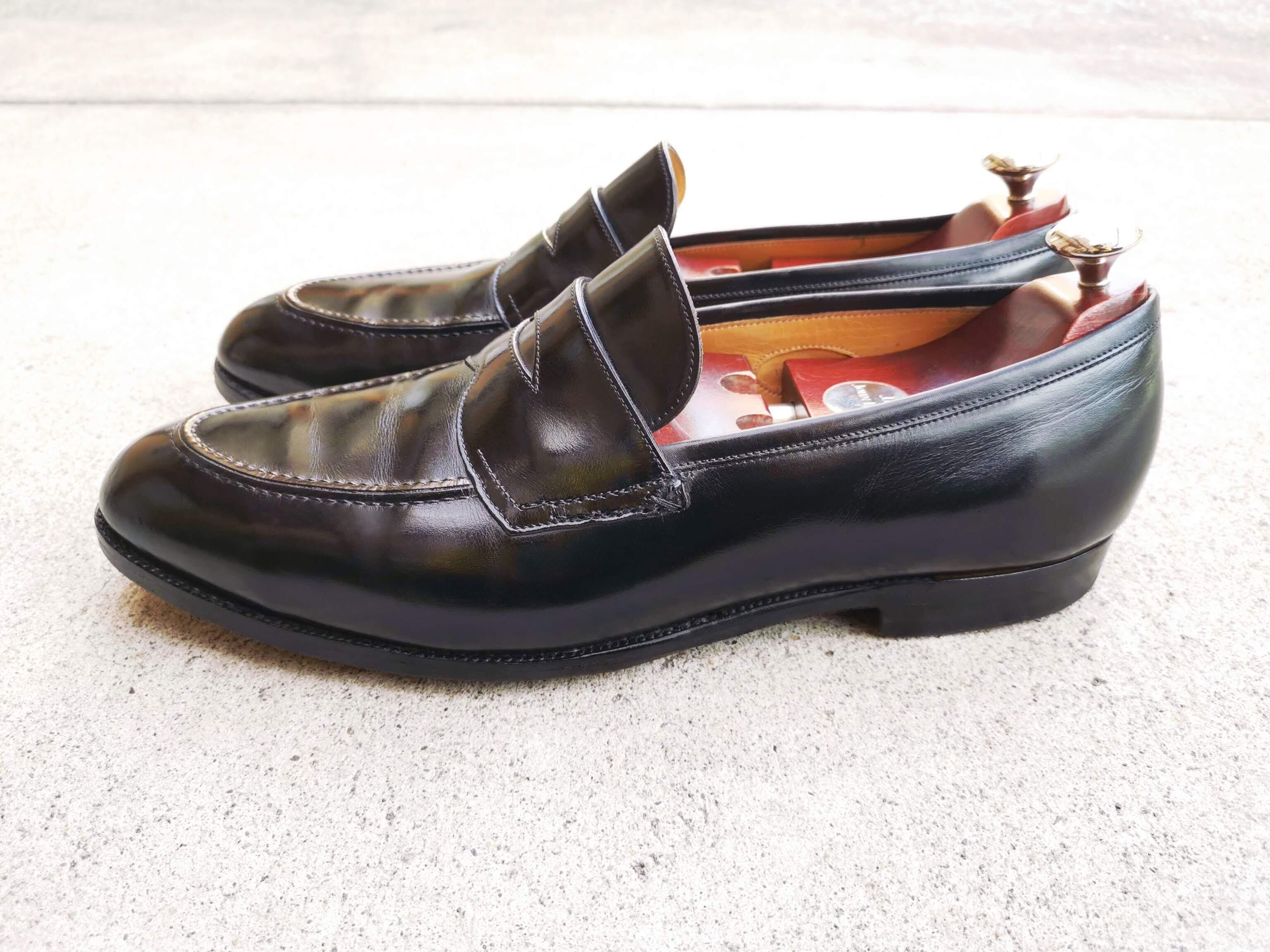 こちらの商品は、エドワードグリーンのコインローファーの名作、「Piccadilly/ピカデリー」です。ラストは、丸みがありながらもスリムなトゥシェイプが特徴の「184」となります。トゥが少し細身に作られているため、重厚でカジュアルな印象があるローファーにエレガントさが加わり、品のあるシャープなノーズに特徴のあるエドワードグリーンのスタイリッシュな装いが演出されます。この靴を見ると、「出来得る限りの上質を求める」という創業者エドワード・グリーンの哲学が息づいていることを感じさせられます。選び抜かれた上質なカーフレザーを贅沢に使用し、グッドイヤーウエルト製法により、職人がひとつひとつ丁寧に仕上げています。カジュアルな装いと相性が良く、素足に合わせるのはもちろん、ボトムをくるぶしほどの丈にして、あえてソックスを見せると、より洒落た印象に仕上がります。これからの季節、スーツ・ジャケパン・チノパン・デニムスタイルなどにガッチリはまる万能選手で、エース級の活躍をみせてくれることは間違いないでしょう。さらに、このクオリティでこの価格ですから、ご検討いただく価値は十分にございます。是非この機会に、末永く愛用していただける品を手にしてみてはいかがでしょうか。多方面で販売しているため、完売となった時点で出品取り下げとなりますので、ご了承下さいませ。