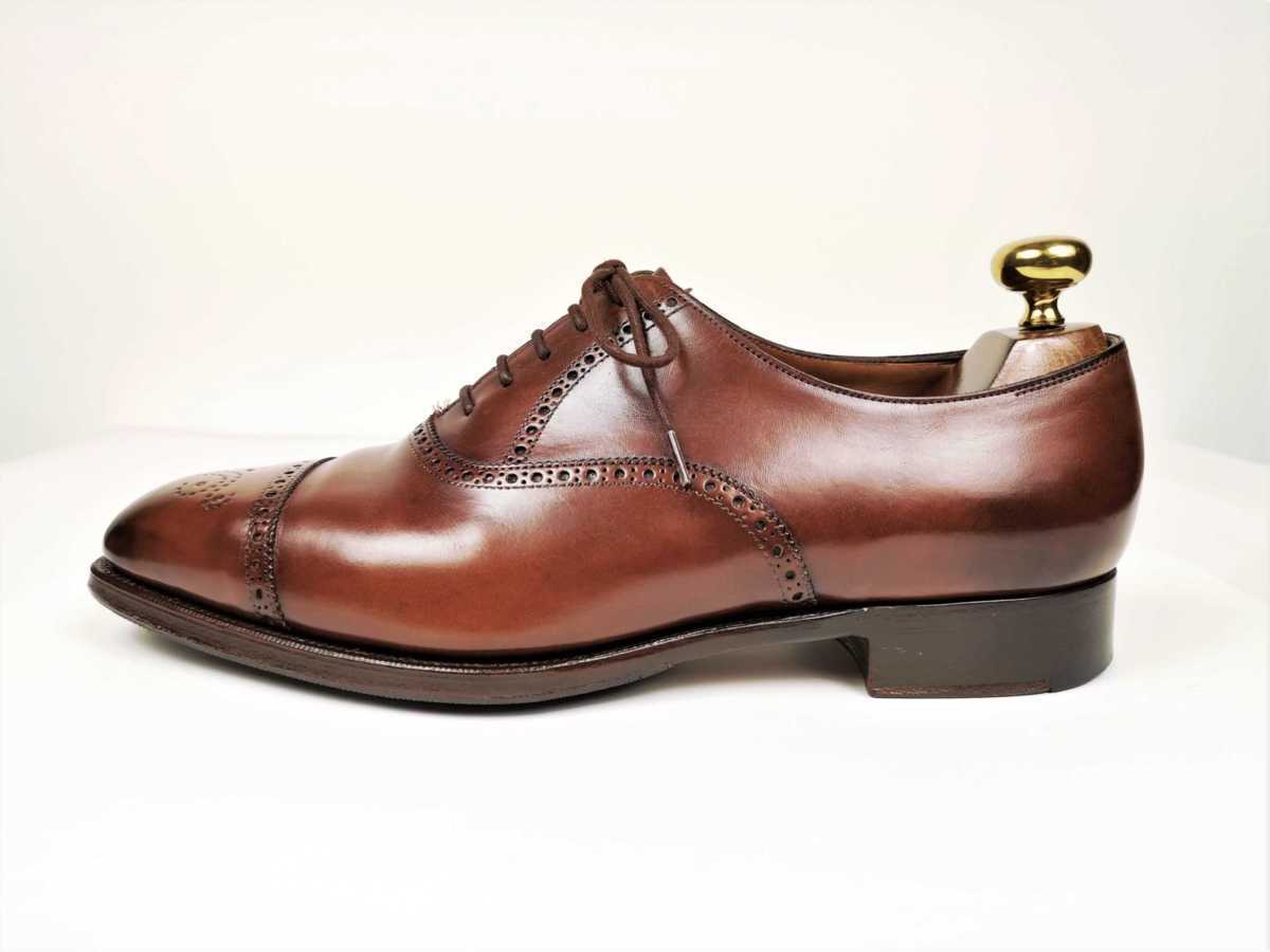 ストレートチップの名作「チェルシー」に、メダリオンとパーフォレーションを施したデザインで、採用されている888ラストの、ナローセミロングなチゼルトゥの現代的なシルエットは実に優美で、絶妙なバランスのシルエットとデザインで上品さが醸し出されています。