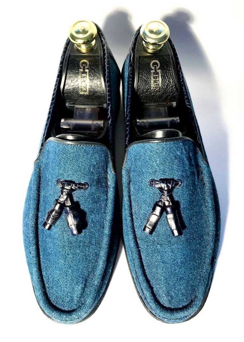 ★超レア・定価60万円超・極上品★ アルティオリ ARTIORI 極上クロコダイル&デニムタッセルローファー ブルー サイズ8