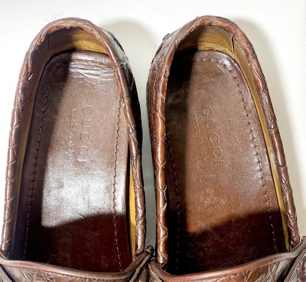★定価45万円超・着用数回の極上品★ グッチ GUCCI 極上クロコダイルレザービットローファー ダークブラウン サイズ8