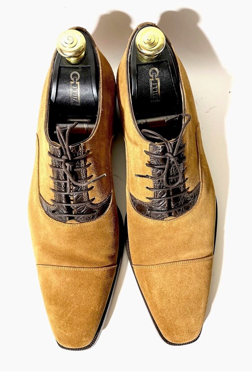 ★超レア・定価35万円超・着用数回の極上品★ サントーニ SANTONI リアルクロコダイル&スエードストレートチップ ブラウン サイズ8