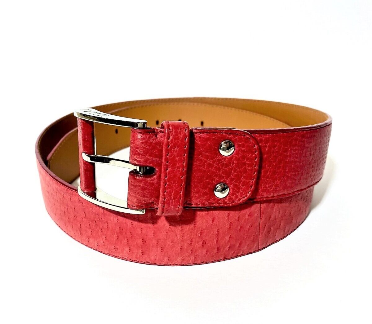 ★定価75万円超・新品未使用★ ジリー ZILLI 極上オーストリッチレザーベルト ピンクレッド サイズ100(サイズはカット調整可)
