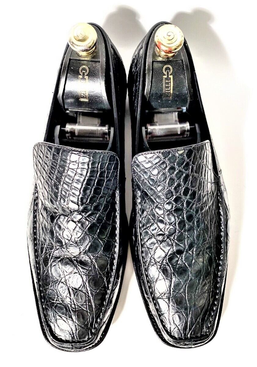 ★定価40万円超・着用感少ない極上品★ ア・テストーニ A testoni 極上クロコダイルレザーローファー ブラック サイズ10