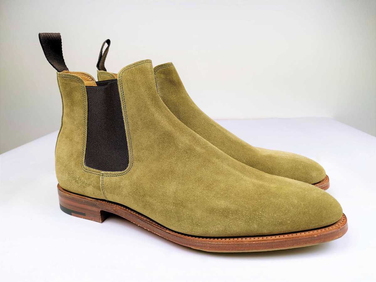ジョンロブオリジナルのラグソール(ラバーソール)と、最高級のスエードレザーが特徴の一足です。