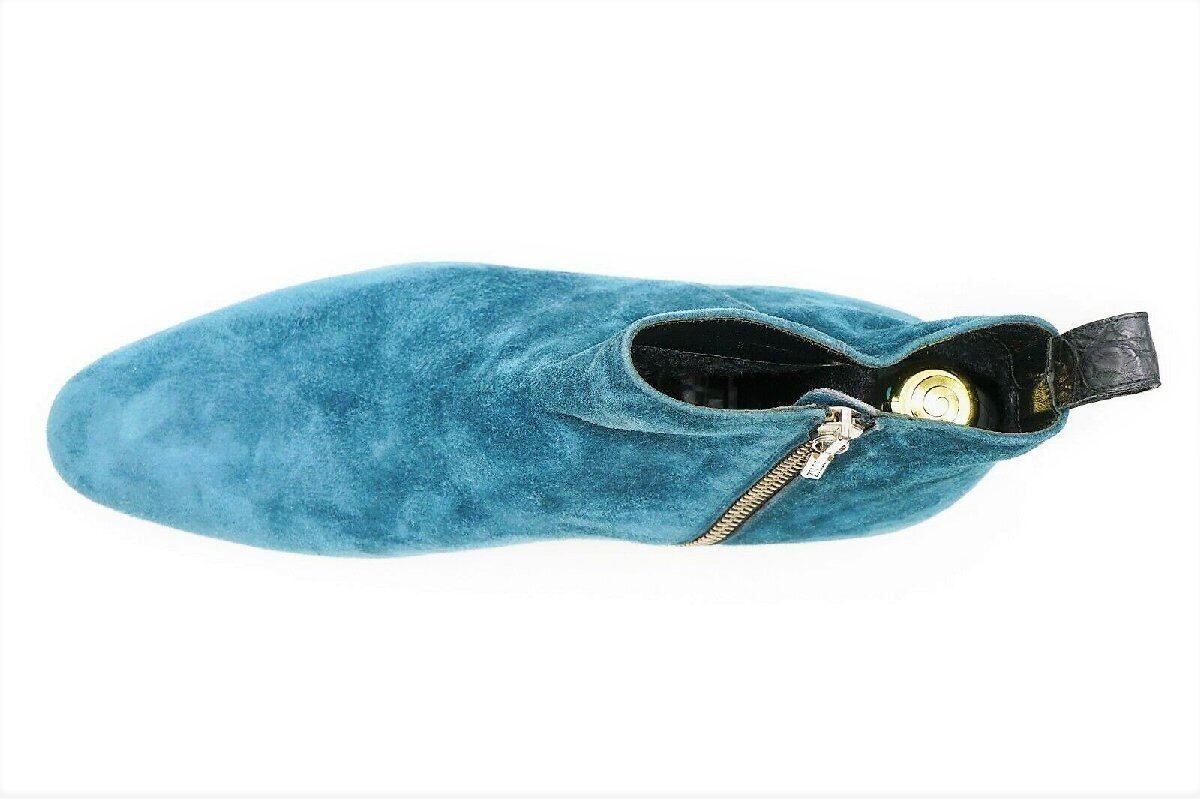 ★定価110万円超・新品未使用★ ジリー ZILLI 極上スエード&クロコダイルレザーブーツ ブルー サイズ7 純正ツリー・BOX・クロス等付属