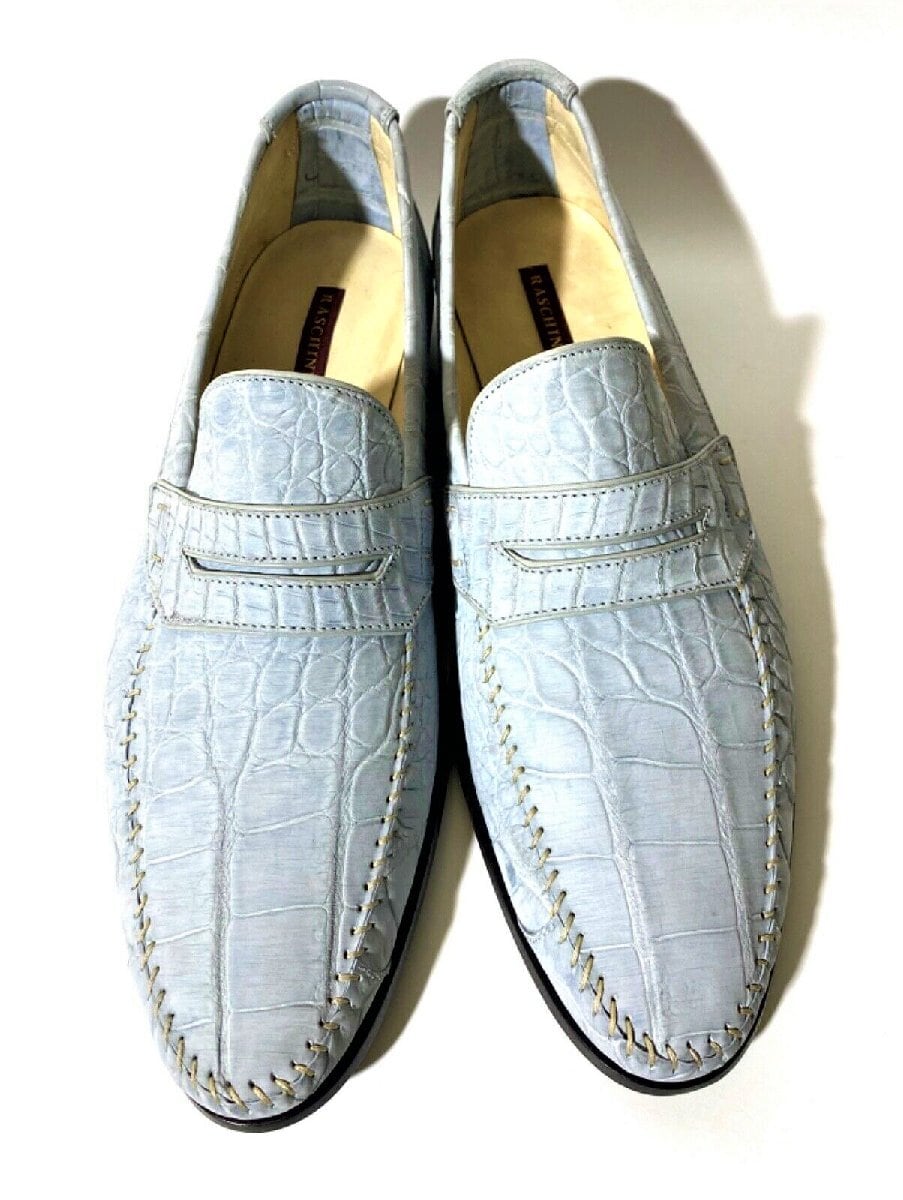 ★激レア・定価110万円超・新品未使用★ ラスチーニ RASCHINI 極上クロコダイルレザーローファー ライトブルー サイズ9.5