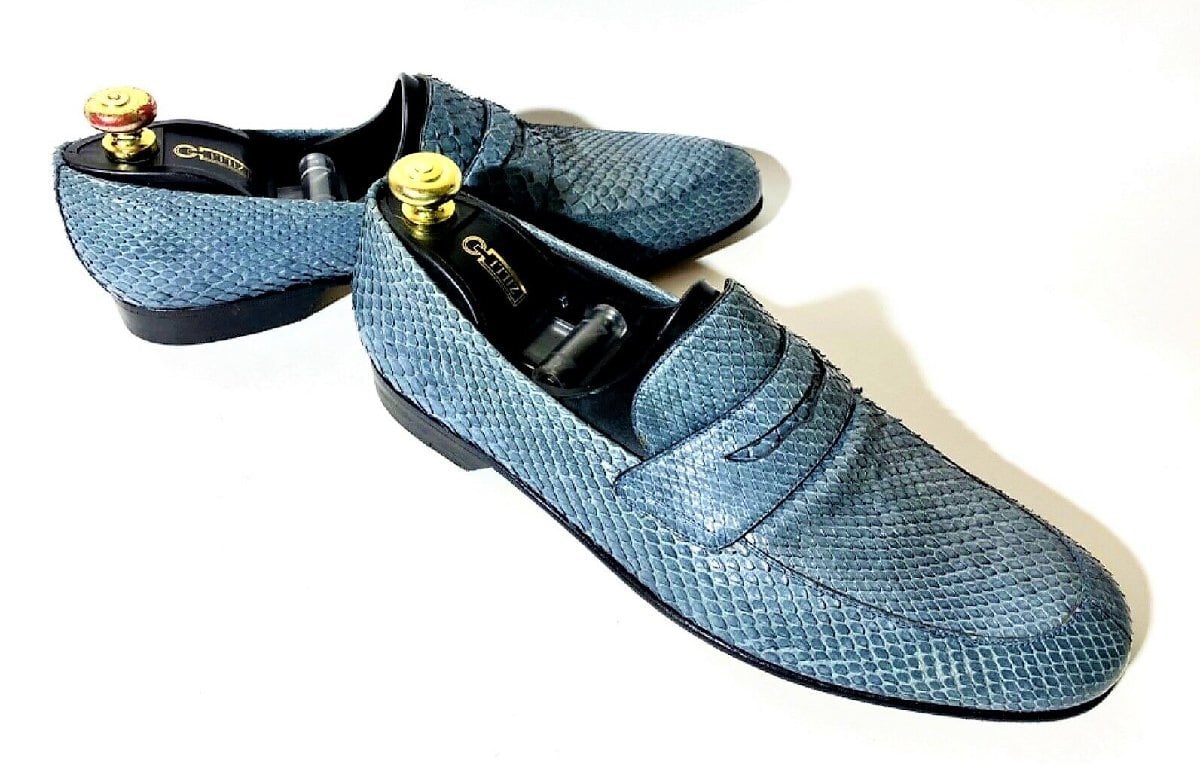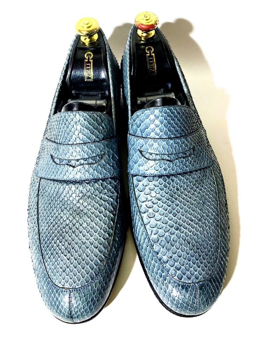 ★定価40万円超・極上品★ ア・テストーニ A testoni 極上パイソンレザーローファー ライトブルー サイズ9.5