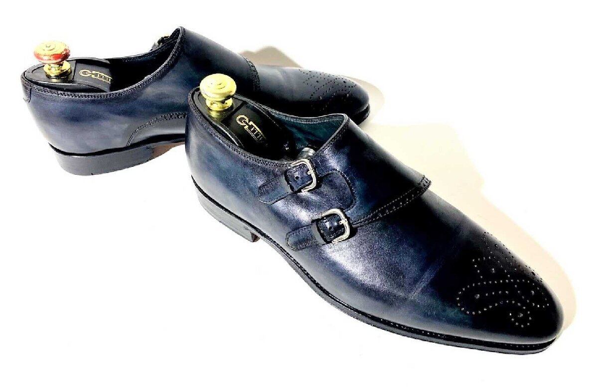 ★定価50万円超・極上品★ ボントーニ BONTONI 極上カーフダブルモンクストラップ ダークブルー サイズ44(28.5cm相当)