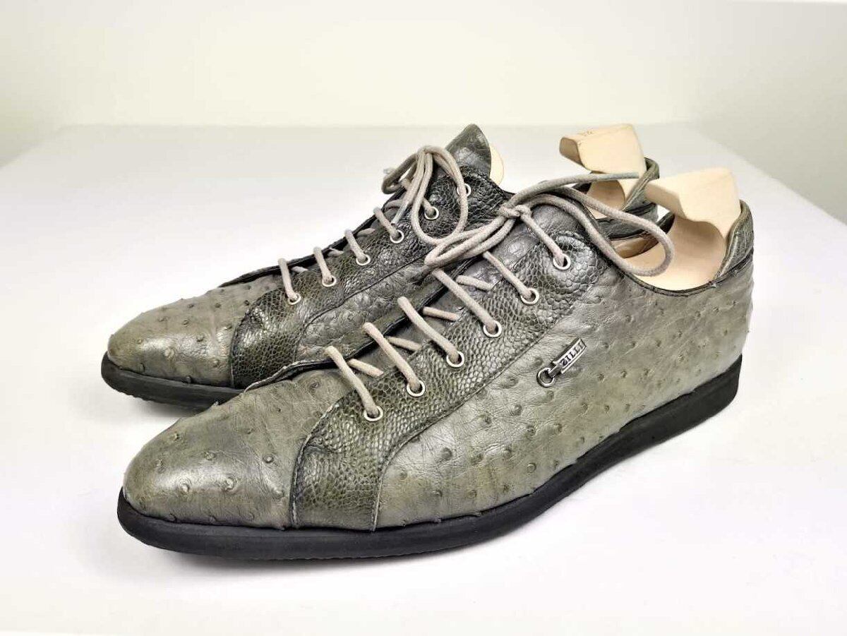 ★定価110万円超・極上品・片方プレート欠★ ジリー ZILLI 極上オーストリッチ&スネークレザースニーカー グレー サイズ8
