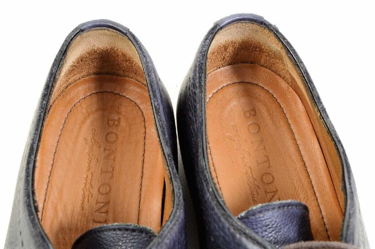 ★定価45万円超・極上品★ ボントーニ BONTONI 極上カーフレザープレーントゥ ダークブルー サイズ40(25cm相当)